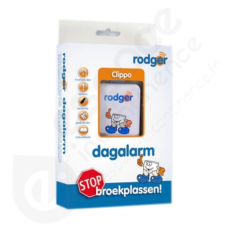 L'alarme Stop Pipi Rodger réveille l'enfant lorsqu'il commence à mouiller son lit , l'aidant ainsi à surmonter les problèmes d'énurésie nocturne. Dès que l'émetteur détecte l'humidité des sous-vêtements, l'alarme se déclenche pour réveiller l'enfant et lui permettre de se rendre aux toilettes.