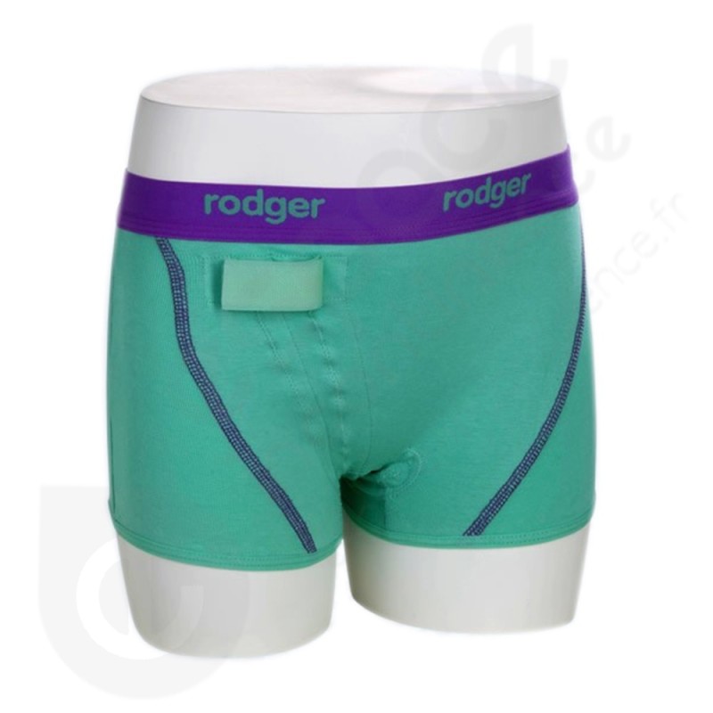 Les Shortys Rodger ressemblent à des sous-vêtements normaux mais renferment des détecteurs d'humidité. Ils sont également équipés de pressions afin de brancher les Alarme Stop-Pipi Sans Fil et Alarme Stop-Pipi Filaire avec pince Rodger