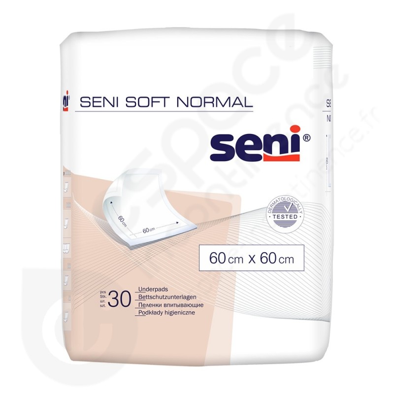 Les Seni Soft Normal 60 x 60 cm sont des alèses jetables de la marque Seni.