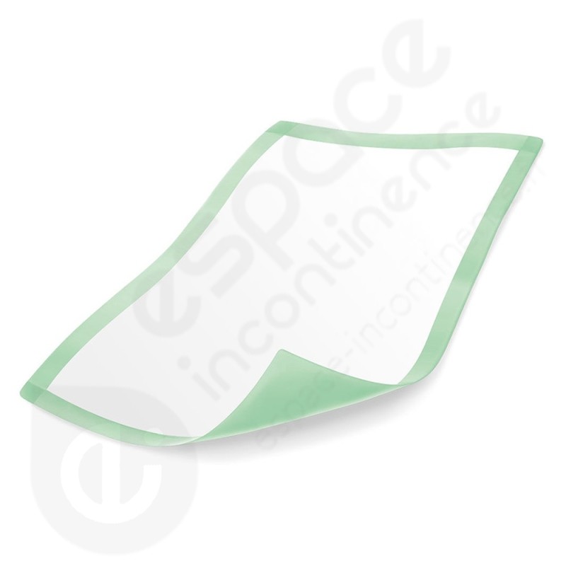 La partie absorbante de l'alèse étant le côté blanc, le côté vert est à diriger vers le lit.