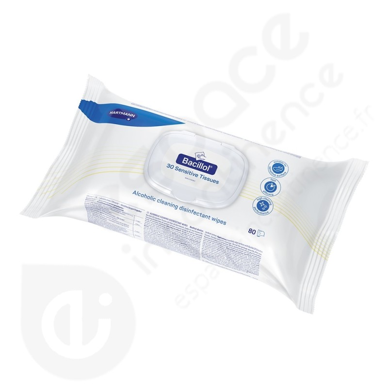 Lingettes de désinfection et de nettoyage rapide Bacillol 30 Sensitive Tissues sont respectueuses des matériaux, même pour les surfaces sensibles, dans un emballage pratique. Le premier produit professionnel de désinfection des surfaces respectueux des allergies et de l'asthme, avec une excellente compatibilité cutanée.