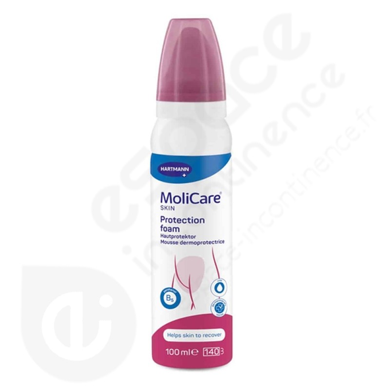 La mousse dermoprotectrice MoliCare Skin est préconisée pour soulager la peau des parties intimes irritées. Parce que la peau des personnes incontinentes est soumises à l'agression de l'urine et des selles, la mousse dermoprotectrice Molicare Skin est enrichie à l'huile d'amandes, acides aminés hydratants, de la créatine et acides gras essentiels insaturés. Elle contient le complexe de protection Nutriskin qui hydrate de manière prolongée la peau. Sa senteur fraîche et fruitée neutralise les odeurs.