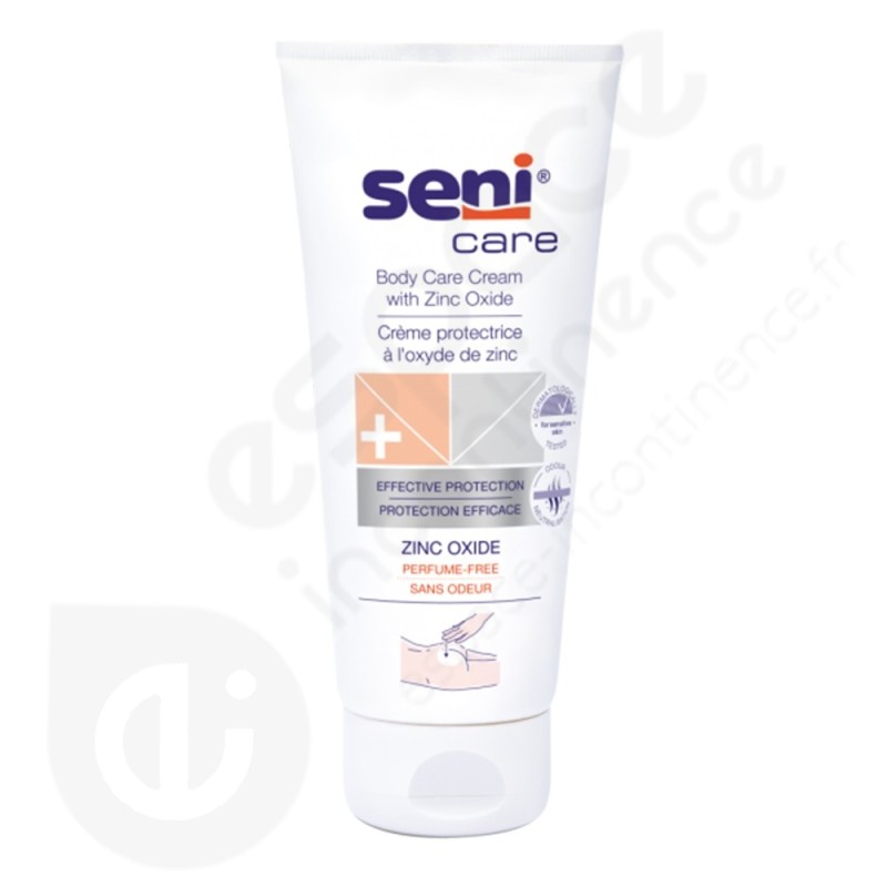 La crème protectrice avec oxyde de zinc Seni Care protège contre les rougeurs et les inflammations. Recommandée pour un usage quotidien, elle accélère la régénération de la peau en cas des irritations et facilite la prévention des escarres. La crème laisse sur la peau un film protecteur qui constitue une barrière contre des substances agressives (urine, selles). Elle contient du SINODOR, un neutralisateur d'odeur d'urine naturel.