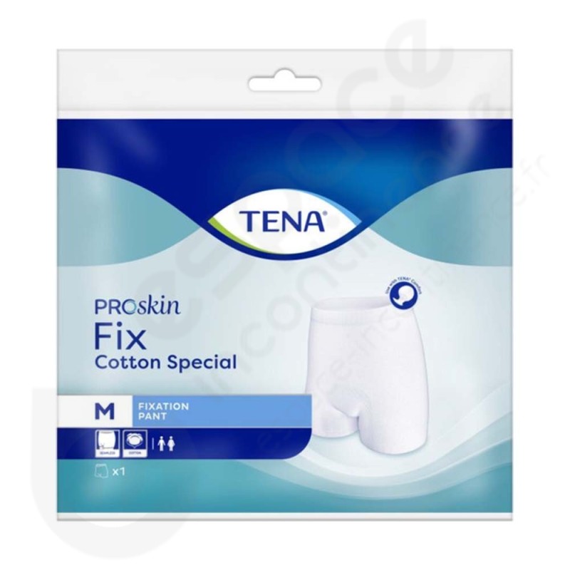 La TENA Fix Cotton Special, douce, confortable et semblable à un sous-vêtement, maintient les serviettes d'incontinence de forme anatomique, comme TENA Comfort, bien en place. Elle offre un large élastique à la taille et aux jambes, et des élastiques supplémentaires à l'entrejambe. Grâce au mélange spécial de 71 % de coton, 25 % de polyester et de 4 % d'élasthanne, la TENA Fix Cotton Special permet un ajustement impeccable en épousant parfaitement les formes du corps, favorisant une peau saine. Pour bénéficier d'un confort et d'un ajustement optimal, choisissez la bonne taille parmi une vaste gamme, et obtenez le meilleur maintien. La culotte de maintien TENA Fix Cotton Special peut être lavée à 60 degrés puis passée au sèche-linge sur programme doux jusqu'à 50 fois sans perdre sa forme.