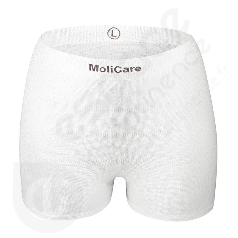 Le slip Molicare Fixpants Large permet un excellent maintien du produit. Il s'adapte parfaitement à la morphologie des personnes et ne sert pas aux jambes.